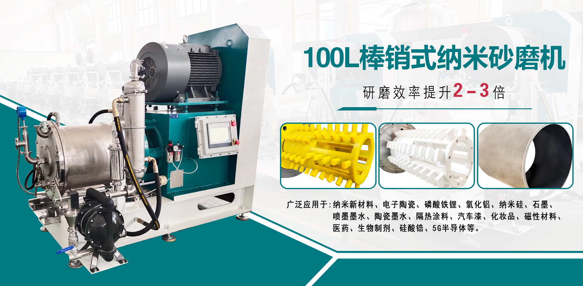 工業(yè)級(jí)棒銷動(dòng)態(tài)砂磨機(jī)廣泛應(yīng)用于微米級(jí)亞微米級(jí)、納米級(jí)的中高粘度物料的研磨,動(dòng)靜環(huán)間隙出料,棒銷轉(zhuǎn)子結(jié)構(gòu)滿足不同尺寸、不同研磨細(xì)度以及不同研磨工藝的生產(chǎn)需求 臥式砂磨機(jī),適用于對(duì)研磨精度要求高的化工物料,連續(xù)封閉式高效率濕式研磨分散。 輸送泵有氣動(dòng)隔膜泵和圓弧泵、刮板泵研磨介質(zhì)為氧化錯(cuò)珠,根據(jù)物料及細(xì)度要求選擇介質(zhì)大小